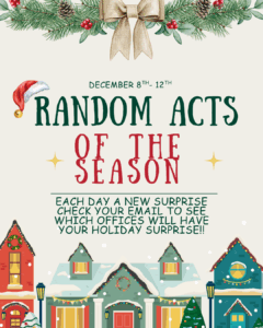 Stephens College’s annual tradition, Random Acts of the Season, is a week-long event where different offices surprise students each day with special gifts!
